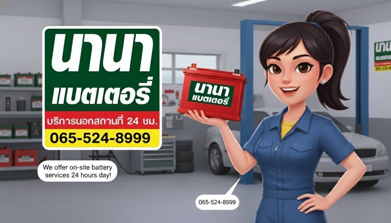 นานาแบตเตอรี่ ชุมพร บริการเปลี่ยนแบตเตอรี่นอกสถานที่ 24 ชม.